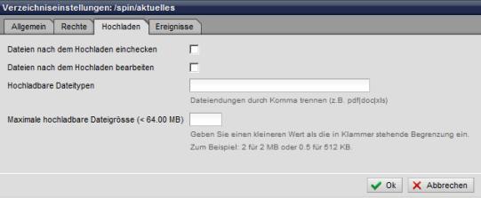 Hinweis: Die Berechtigung, ob ein Redakteur generell Dateien hochladen darf, wird über die Verzeichnisberechtigungen gesteuert.